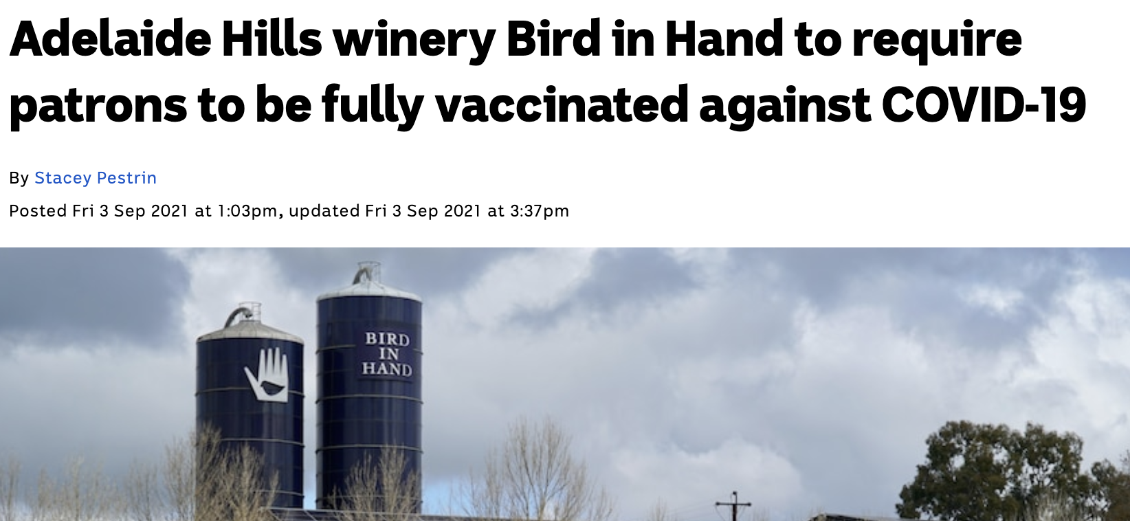 The likes of Bird in Hand winery declared that only vaxx quaxx could enter their premises - ever.