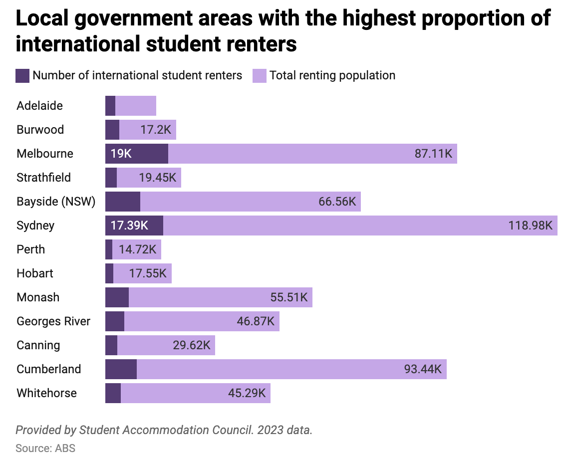 The ABC chart above shows in places like Adelaide and Burwood, nearly a quarter of renters are actually international students.
