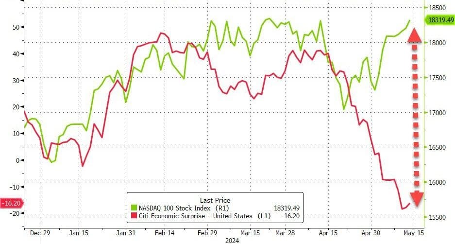 Finally, spot the odd one out - Nasdaq at record highs while US macro data at its weakest in two years...