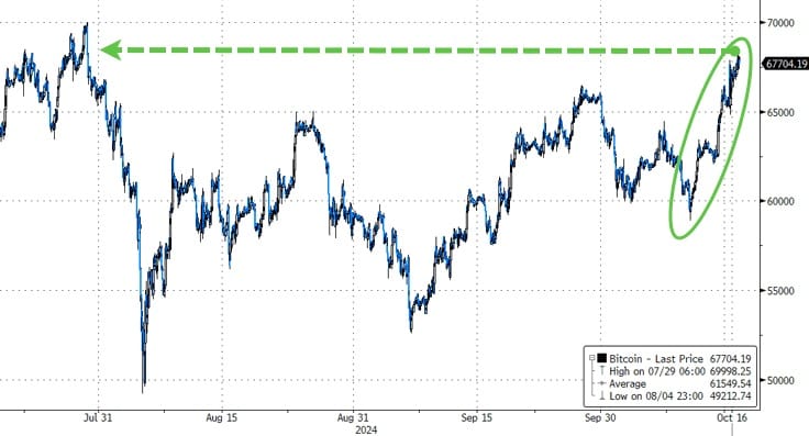 Meanwhile, Bitcoin continues to rip (Trump victory?), topping USD$68,000 overnight for the first time since July.