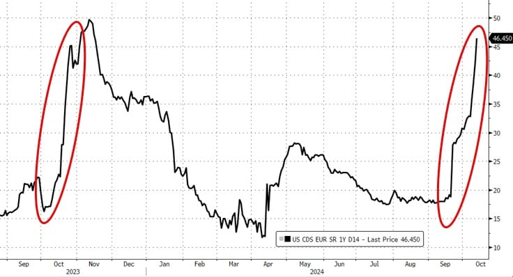 Lastly (and worryingly) USA sovereign risk has surged to its highest in a year.