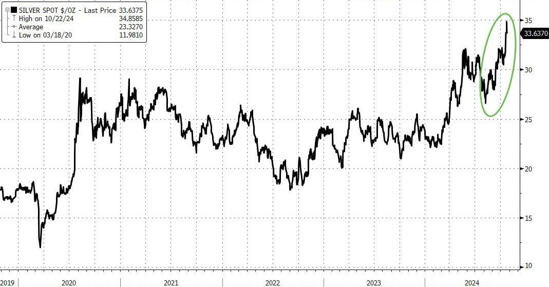 Around USD$33 per ounce Silver looks like a bargain compared to Golds' USD$2,750 price let alone Bitcoin's USD$68,000 price!