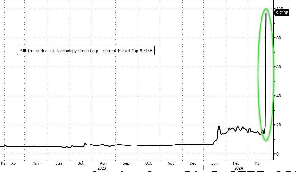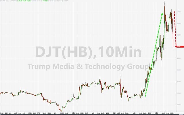 and this is truly astonishing. Trump Media & Technology Group (DJT) rocketed higher today... only to be dumped late on, erasing half of the day's gains...