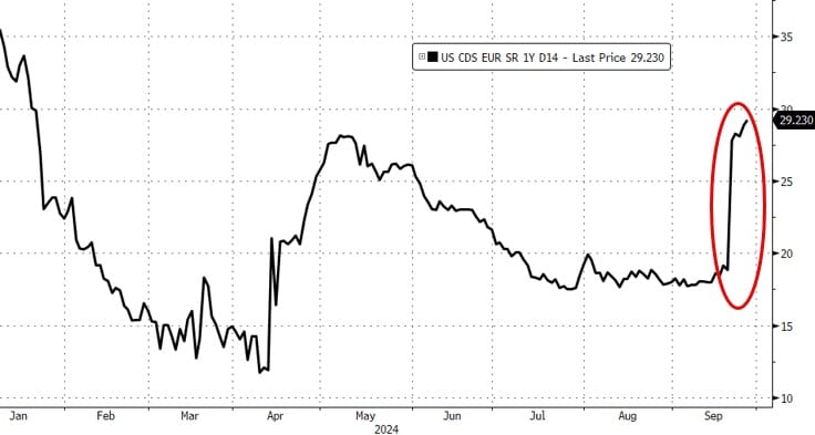 US Sovereign risk exploding higher...so did The Fed cut rates to rescue the Treasury and ensure Kamala the Presidency??