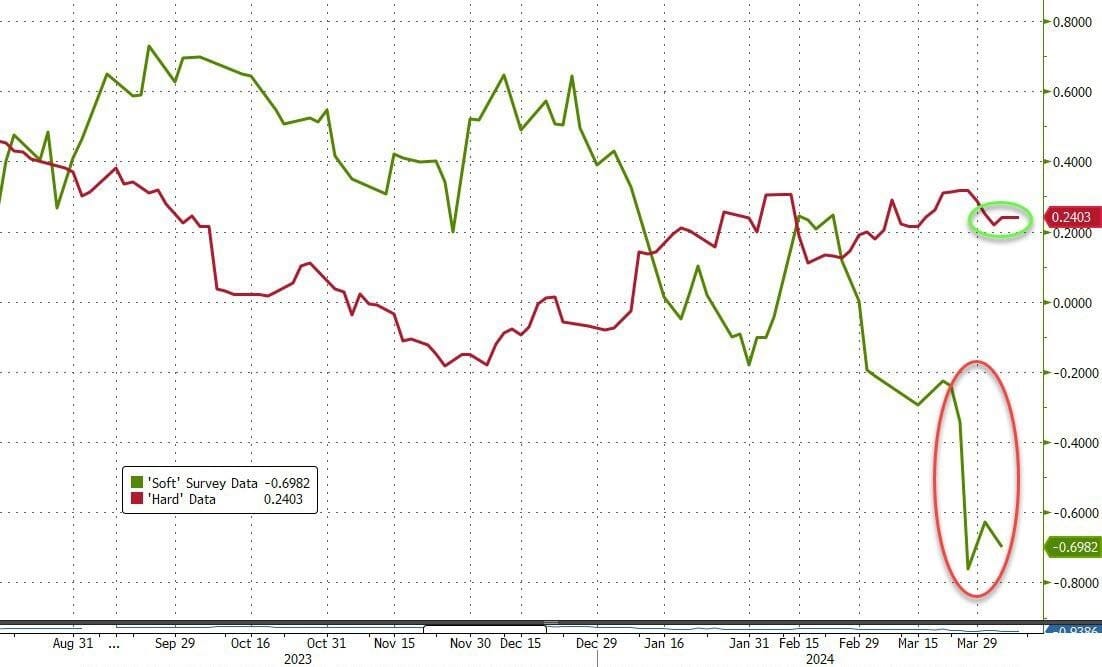 ...but 'soft' survey data remains mired in depression as the 'aggregate' hard data holds strong...