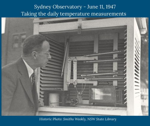 On 27 December 1790, measured just a stone’s throw from modern-day Observatory Hill, Sydney's temperature reached 108.5 °F (42.5 °C) by 1:00 pm, before peaking at 109 °F (42.8 °C) at 2:20 pm.