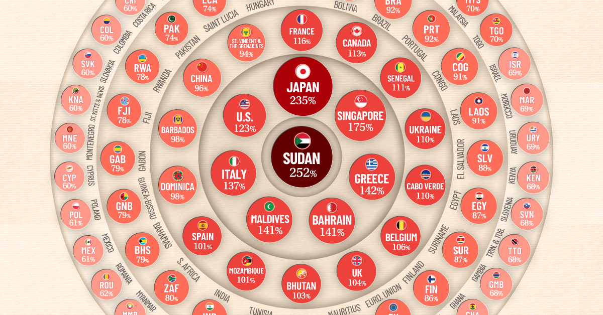 Japan was recently unseated as the country with the highest debt-to-GDP. See which nations have the highest debt relative to their economy.