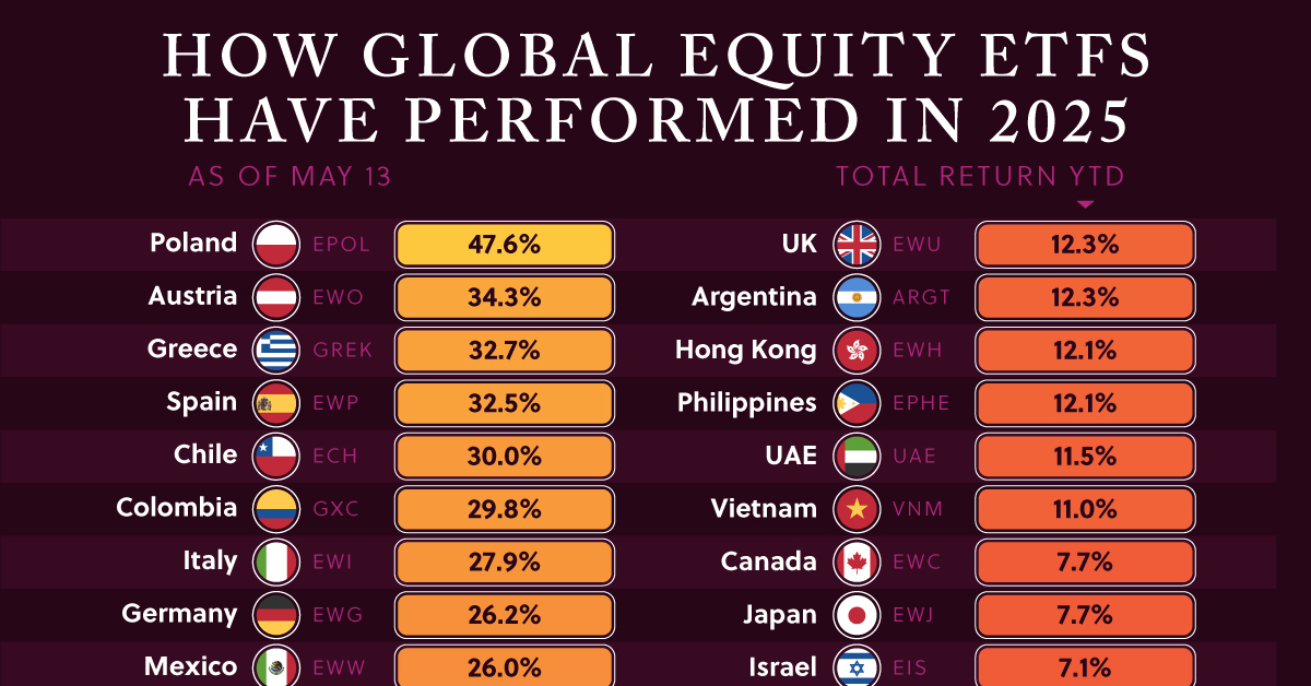 Discover the top performing equity markets in 2025 so far, based on country-focused ETF returns.