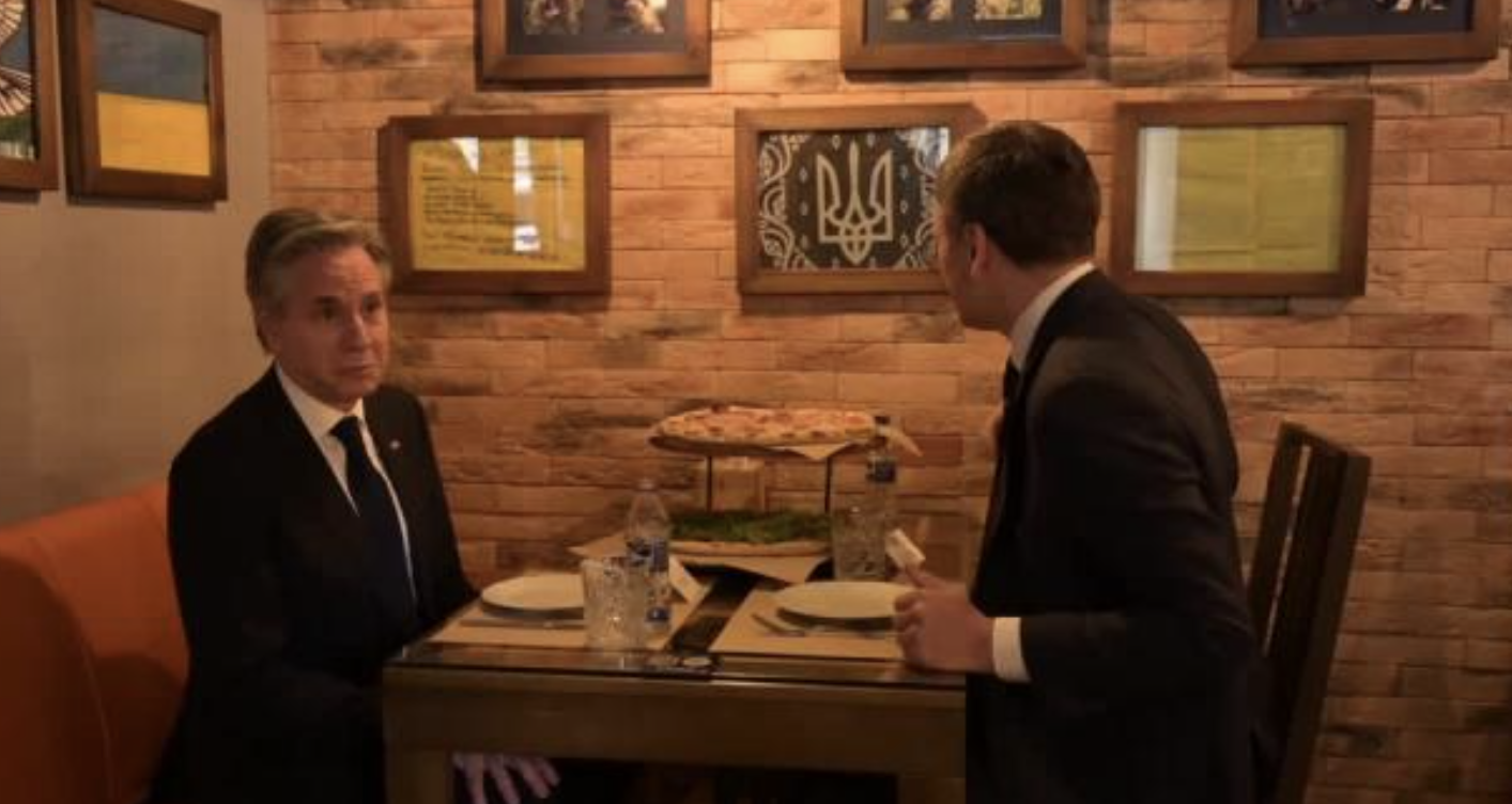 And please don't notice the Ukrainian Nazi theme of the pizza restaurant Blinken chowed down at ...because the government tells us there are no Ukrainian Nazis.